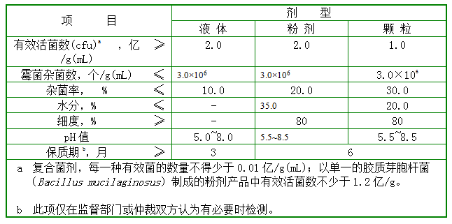 表1 农用微生物菌剂产品的技术指标