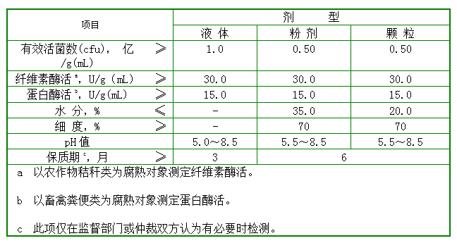 表2 有机物料腐熟剂产品的技术指标
